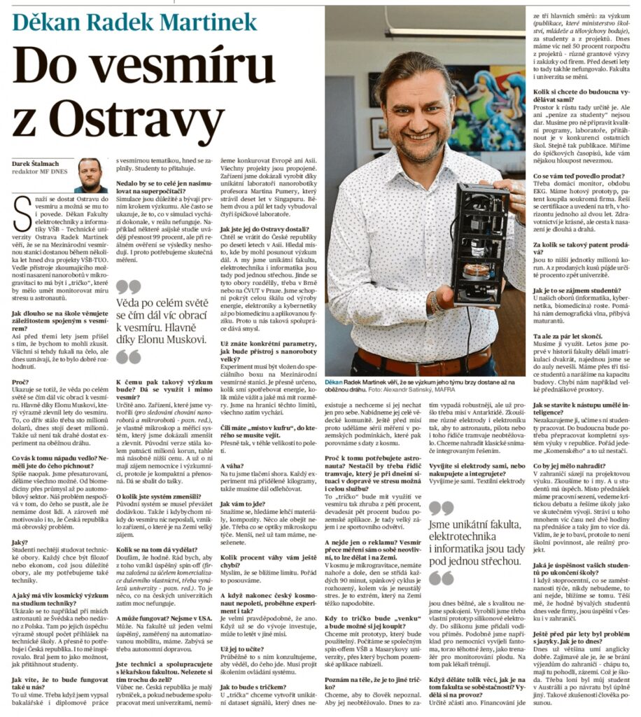 You can also read about the faculty’s space projects in an interview with the dean of the faculty, Prof. Radek Martinek, for the daily newspaper MF DNES, where he talks about the development of the experiments, their contribution to science, and the involvement of students in the research.